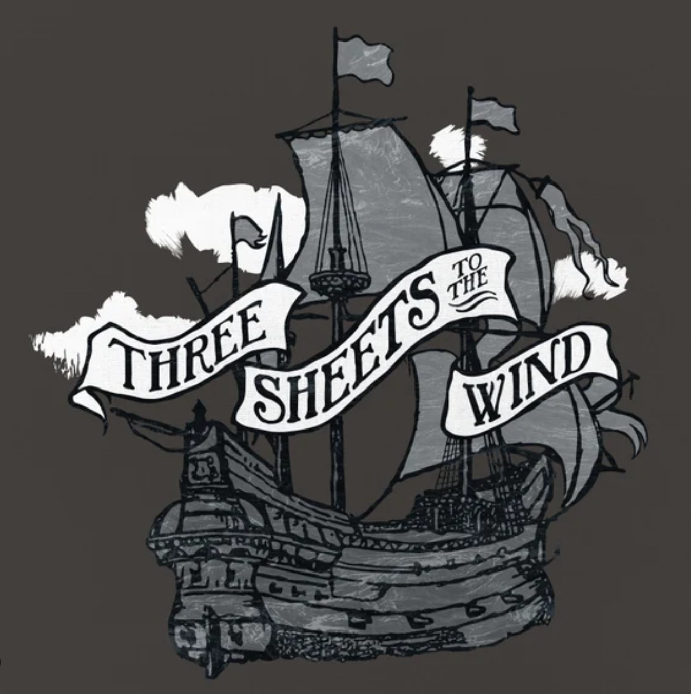 Three Sheets to the Wind - don't be taken aback to hear that sheets aren't sails, as landlubbers might expect, but ropes (or occasionally, chains). These are fixed to the lower corners of sails, to hold them in place. If three sheets are loose and blowing about in the wind then the sails will flap and the boat will lurch about like a drunken sailor.