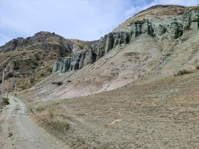 Near the river Mtkvari, next to the road from Tmogvi to Vardzia, you can see imposing geological formation, which interest you of beautiful blue color. What is it? What lies here and what happened some milions years ago? Come to see it.