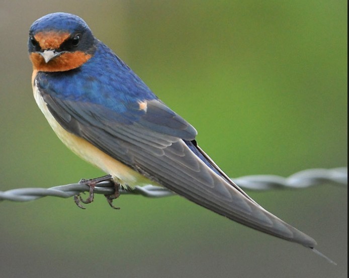 The Barn Swallow is the most widespread species of swallow in the world. It is a distinctive pas serine bird with blue upper parts, a long, deeply forked tail and curved, pointed wings. It is found in Europe, Asia, Africa and the Americas.