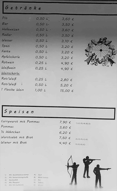 Die Gaststätte des Schützenhauses hat geöffnet. Die Speisekarte findet Ihr bei den Fotos. Es ist eine kleine Gaststätte. Wenn Ihr bei der Anmeldung dazu schreibt, was Ihr Essen möchtet, geben wir das an die gute Seele der Gaststätte weiter. Dann organisiert sie die Gerichte in ausreichender Anzahl und bereitet alles weitestgehend vor, da die Kapazitäten der Küche begrenzt sind.