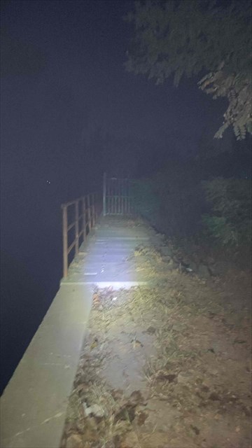 2. Follow the way along the canal until you see a manhole for the canalisation on the left side of the way, then continue to walk straight.