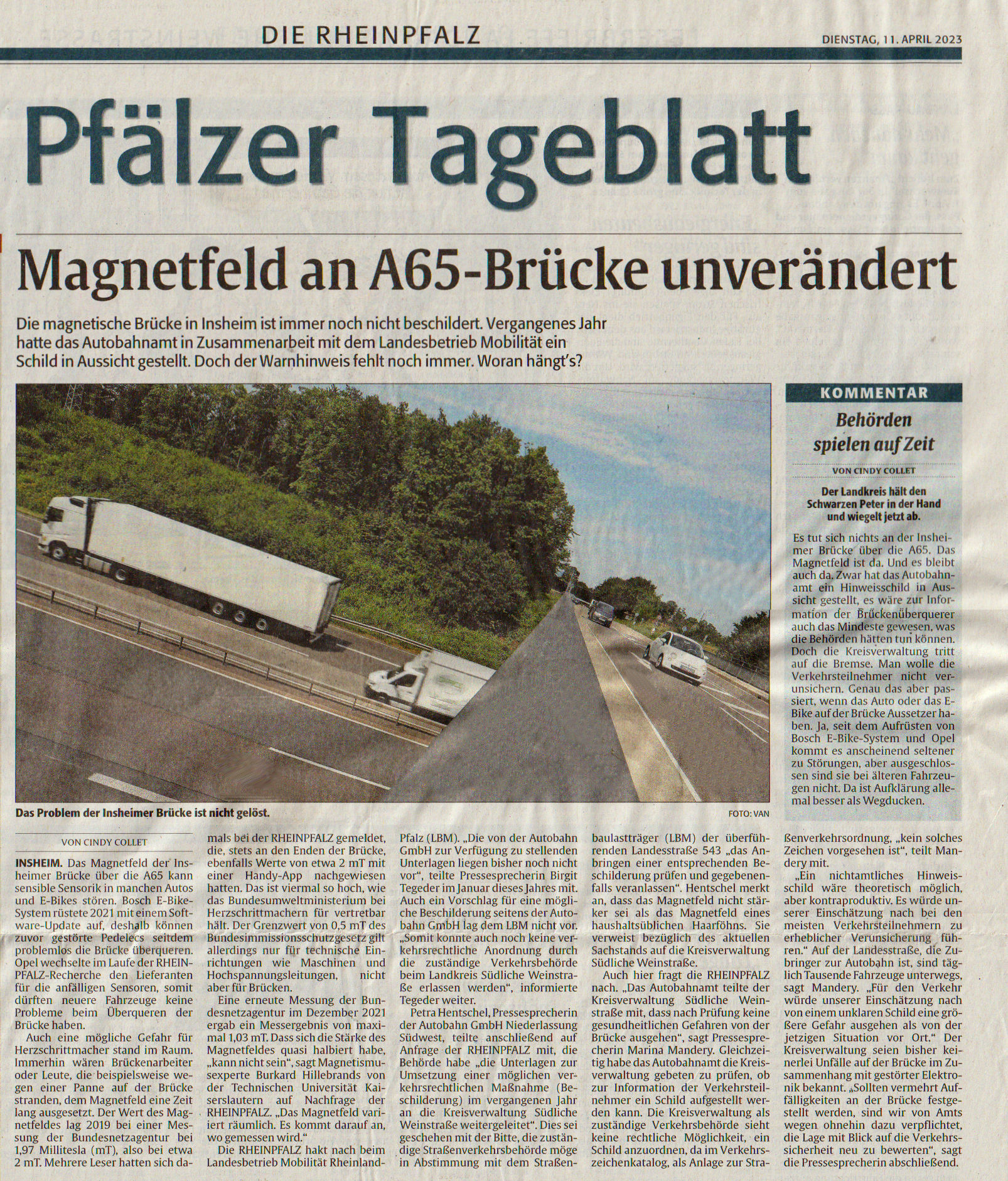 Rund um die 1970 erbaute Autobahnbrücke bei Insheim werden seit einigen Jahren seltsame Störungen registriert. E-Bikes fallen plötzlich aus und E-Autos verzeichnen diverse Störungen. Die lokale Presse berichtete mehrfach hierüber (siehe unten).
