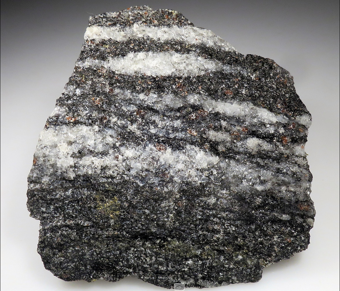 Gneiss is a common and widely distributed type of metamorphic rock. It is formed by high-temperature and high-pressure metamorphic processes acting on formations composed of igneous or sedimentary rocks. Gneiss forms at higher temperatures and pressures than schist. Gneiss nearly always shows a banded texture characterized by alternating darker and lighter colored bands and without a distinct cleavage.