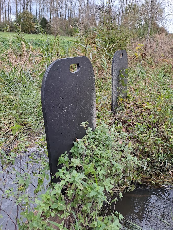 Op het coordinaat zie je onderstaande locatie als weergegeven op de foto, hier zoek je naar een tag op het eerste van 2 zwarte bordjes (de tag is overplakt met zwarte tape en hangt aan de achterkant van wat je op de foto ziet)