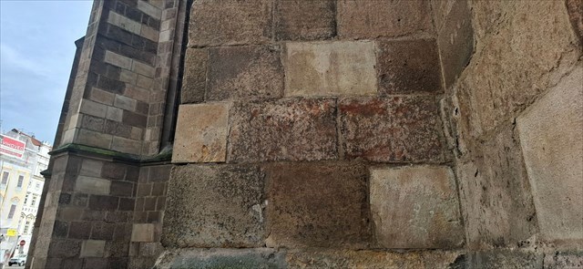 2) Prozkoumejte pískovec na katedrále. Jaké barvy vidíte? Co způsobilo toto zabarvení?