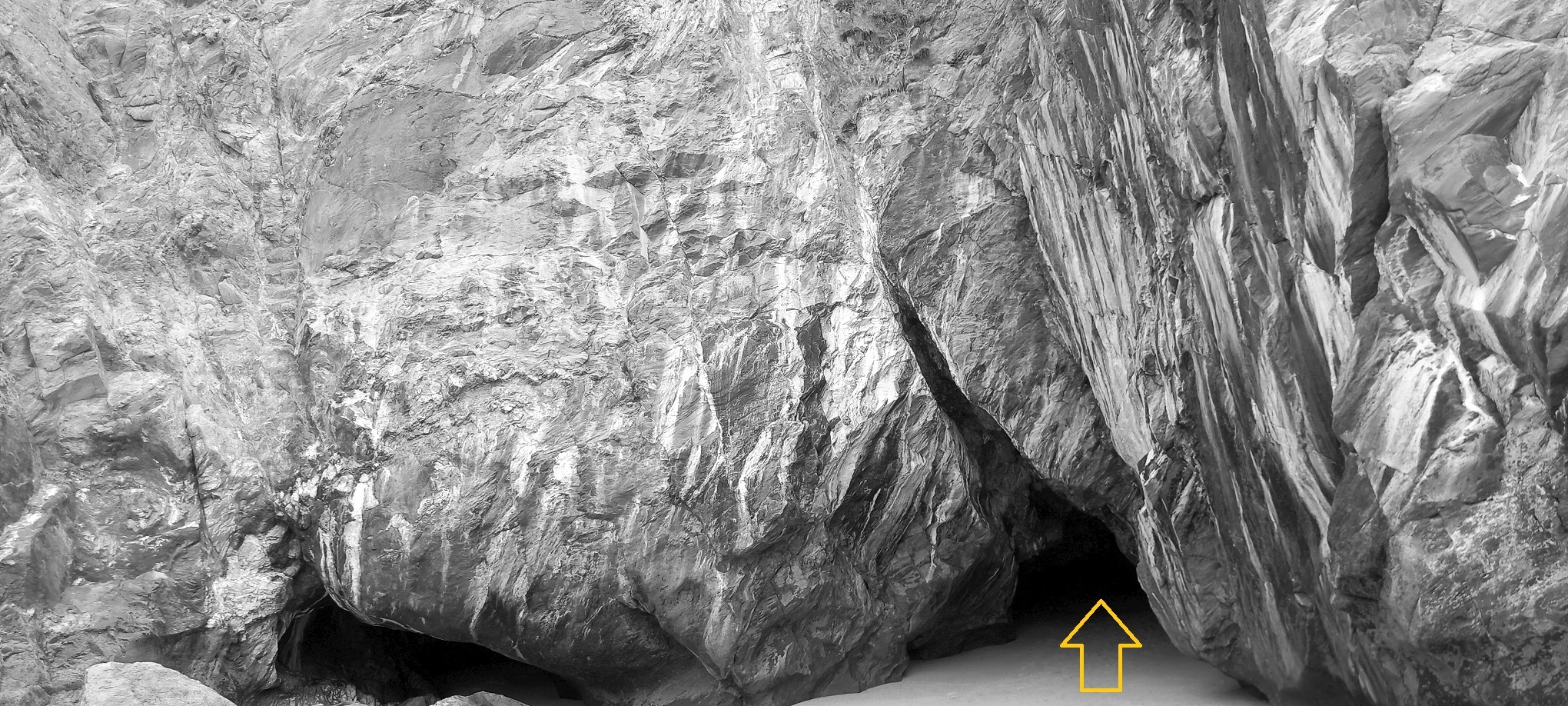 the cave in the background (in black and white if you put