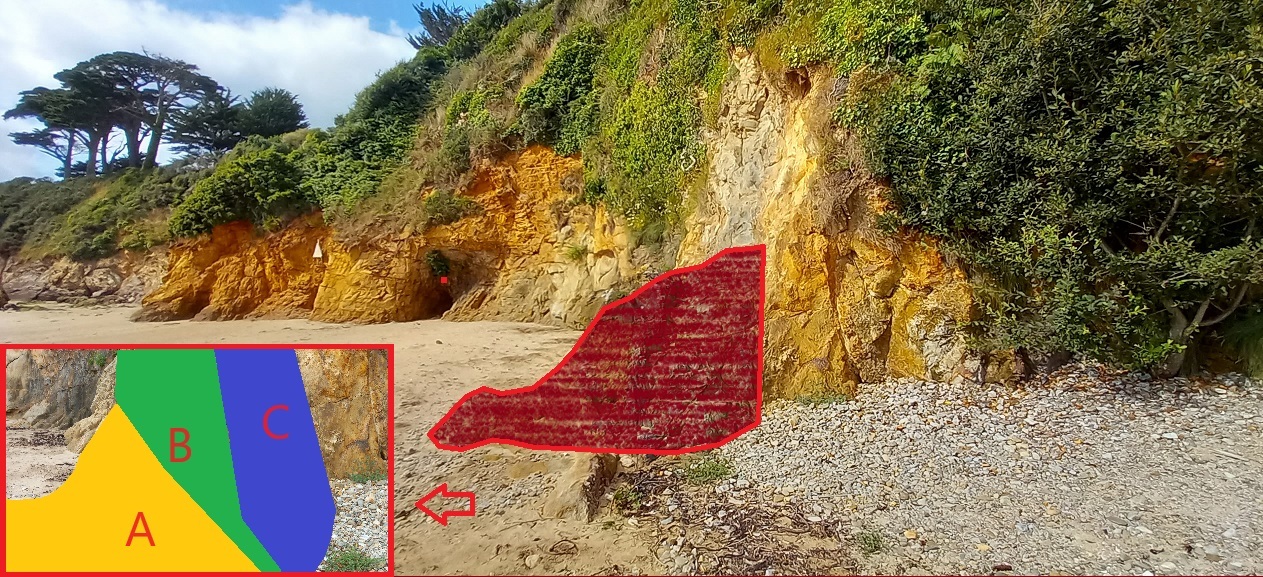 pied de falaise, un platier ancien est fossilisé par un