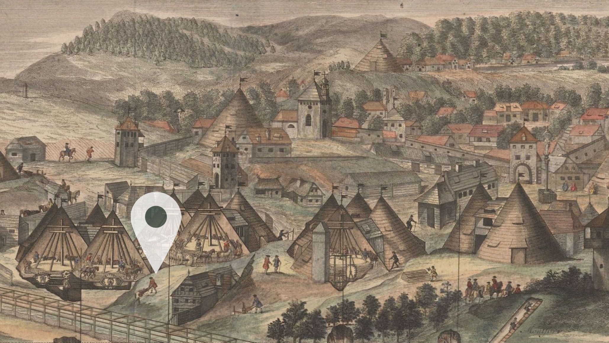 Takto vyzerala oblasť Windšachty v roku 1726. Tu zhruba sa nachádzate.