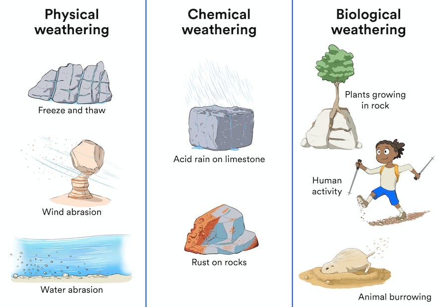 Chemical and mechanical weathering often go hand in hand with mechanical weathering cracking open and exposing more surface area for chemical weathering to eat away at.