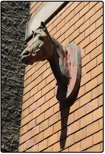 Welche Hausnummer hat das Gebäude, das dieser Pferdekopf ziert? Die Quersumme der gesuchten Hausnummer sei A.
