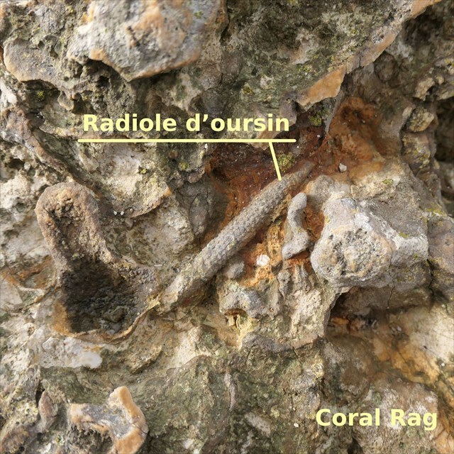 2 - The Middle Oxfordian: The currents change, so it is the waters coming from the Tethys Ocean which flow back into the Paris Basin. The sea temperature is warming, and the sedimentation is becoming predominantly limestone. Little by little the limestone bedrock filled the basin and towards the end of the Middle Oxfordian, under a tropical climate, several small coral reefs developed on the shallows formed by the oolitic sands, to the east of the Armorican shore. Thus, from north to south, the reefs of Mont Canisy, Roque-Baignard and the Mortagne-au-Perche sector follow one another.