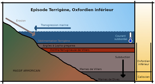 LâĂ©pisode terrigĂšne a dĂ©butĂ© Ă la fin du Bathonien, il sâest poursuivi pendant le Callovien pour se terminer Ă la fin de lâOxfordien infĂ©rieur. Cet Ă©pisode correspond Ă une pĂ©riode de transgression marine.