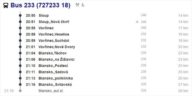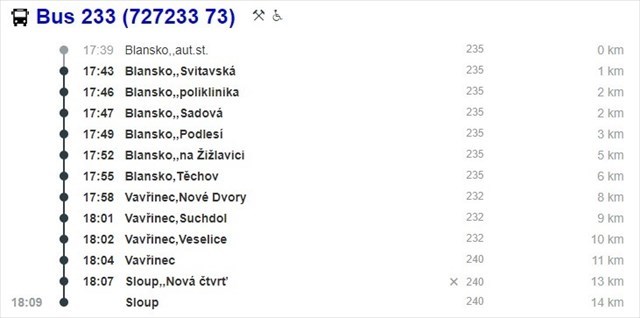 Do Sloupa je možné dorazit autobusovou dopravou. Detaily nejvhodnějších spojů jsou uvedeny na obrázcích níže. Využít lze samozřejmě také jakýkoliv jiný spoj, či osobní dopravu :-)