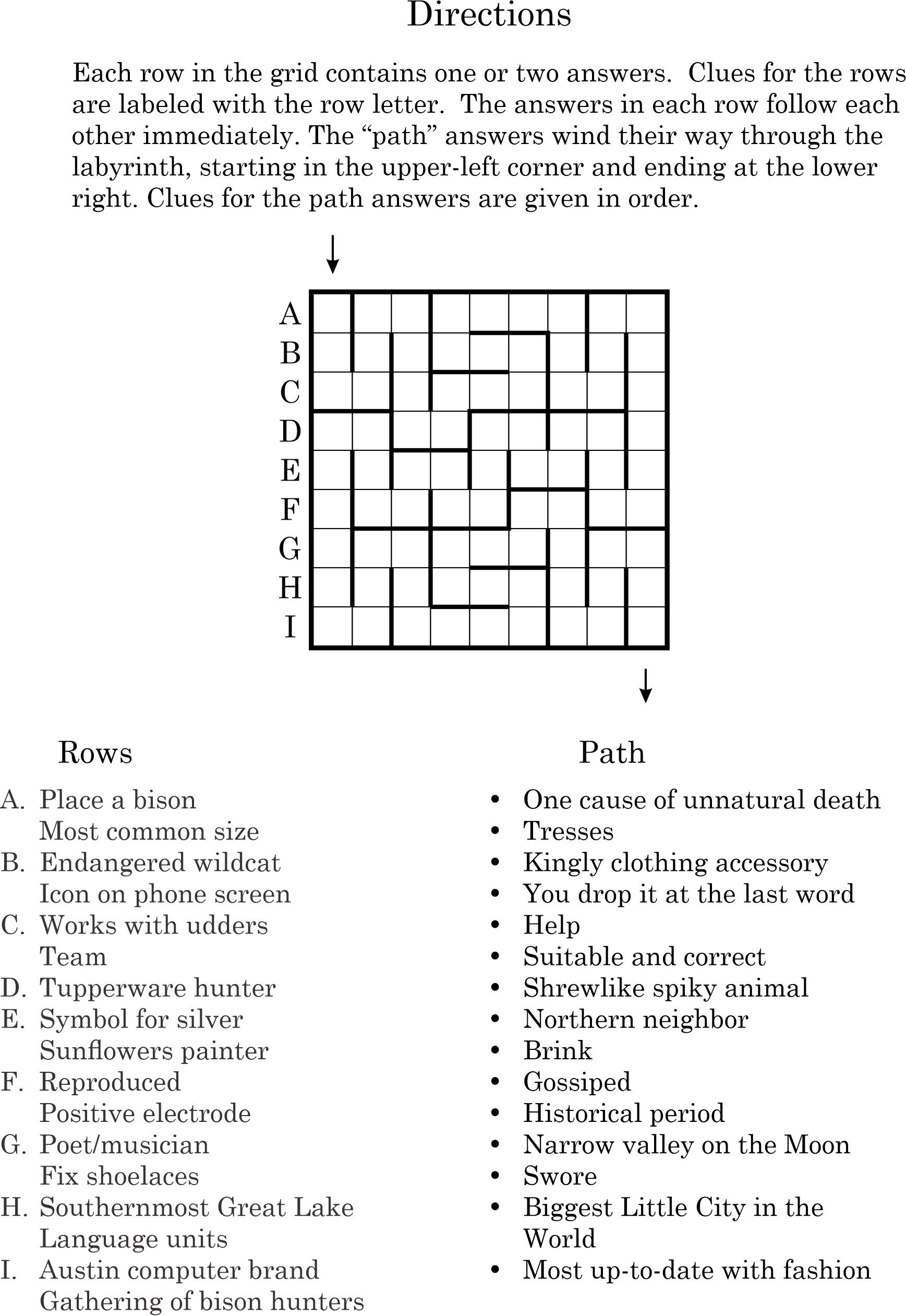 This puzzle represents a step up in difficulty. For me, not for you! Solve the puzzle and enter the first letter of each word along the path into Certitude for the coordinates and a hint.