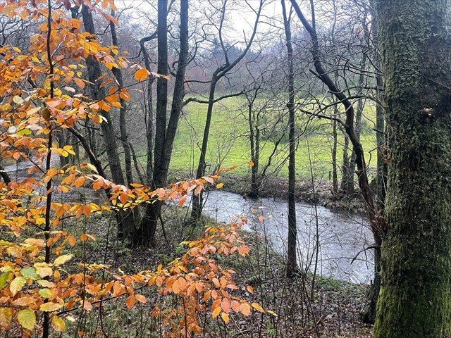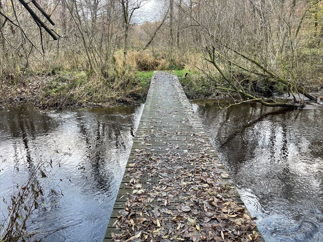 Her står du på en bro over Våde Get. Åen løber her ved broen
