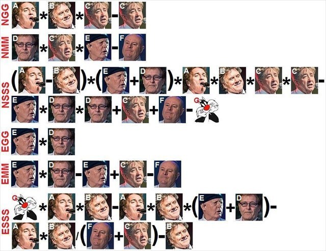 NGG=A*B*C-C, NMM=D*C*E-F, NSSS=(A-B)*(E+D)*A*B*C*C-E*D*D+C+F-G, EGG=E*D, EMM=E*D-E+C-F, ESSS=G*A*B-A*B*(E+D)-A*B/(F+C)-B