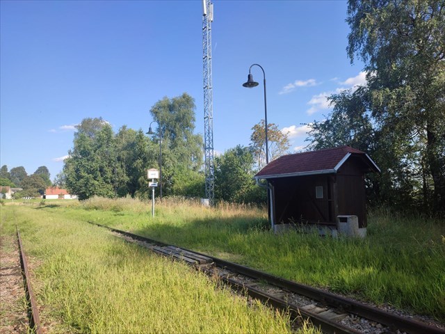 Nádraží, či spíše zastávka, byla zřízena na této úzkokolejné trati, společně se spuštěním provozu, na Vánoce 1906. Je zřízena v 39,844 km trati. Od nejbližších stavení stejnojmenné obce se nachází 1200 metrů a od těch nejvzdálenějších přes 2 kilometry. Tak to holt často bývá. Zastávka má prostý přístřešek, který ochrání cestující před nejhorším nečasem a 3 perónní lampy. Je zde i výhybna s dvěma kolejemi. Zastávka se nachází v těsné blízkosti silnice z Chýnova do Černovic. Autem lze přijet prakticky až na perón, ale doporučujeme nechat svého plecháče na doporučeném parkovišti.