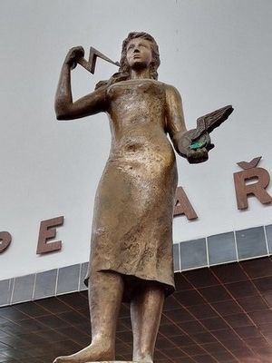 V nádražní hale vás bude zajímat socha Elektrifikace železnic. Počet všech písmen celého jména autora = C.