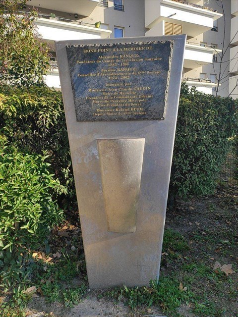 Voici une cache que je vous propose à l'occasion de ce Noel 2023, pour attirer l'attention sur le monument en mémoire d'Alexandre RANQUE aux Caillols, devant lequel je suis passé des centaines de fois sans y préter attention. Vous aussi, peut-être. Alexandre RANQUE, contemporain de Arnault TZANCK (fondateur du premier centre de transfusion sanguine en 1928 puis du centre national de transfusion sanguine en 1949). Il est le fondateur du centre de transfusion sanguine des Bouches du Rhone à Marseille. Il était donc logique qu'un rond-point porte son nom. Quand à la rue Ranque située dans le 1er arrondissement près de la gare Saint Charles, elle n'est pas liée à Alexandre RANQUE mais à l'un de ses oncles, qui y possédait une fabrique d'allumettes. Mais, cela est une autre histoire. La cache n'est pas sur le rond point mais en bordure à l'écart de celui-ci, derrière le monument. Pas de risque à prendre pour y accéder, le trottoir y est large et les possibilités de parking à proximité nombreuses (commerces ou résidence à quelques pas). Et qui sait, peut-être me croiserez vous dans le coin.