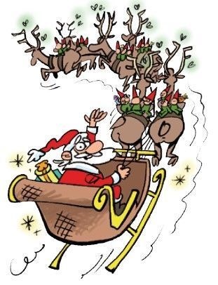 part pour sa tournée avec 6 rennes. Chaque renne transporte 3 lutins sur