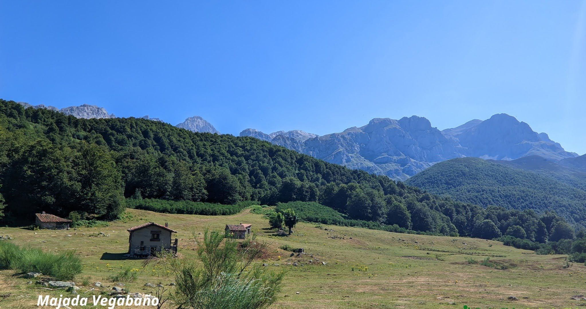 Un kilómetro después del pueblo, gira a la derecha para adentrarse en el hayedo. La pendiente es constante, siguiendo el zigzagueante trazado del camino, que desemboca en una pista forestal, unos metros antes de la barrera que limita el acceso a los vehículos no autorizados. Desde allí, con suavidad, pronto se llega a Vegabaño, una amplia vega despejada que se abre al visitante entre los hayedos que la circundan. Un entorno de singular belleza presidido por el imponente macizo del Cornión y su máxima cota, Peña Santa.