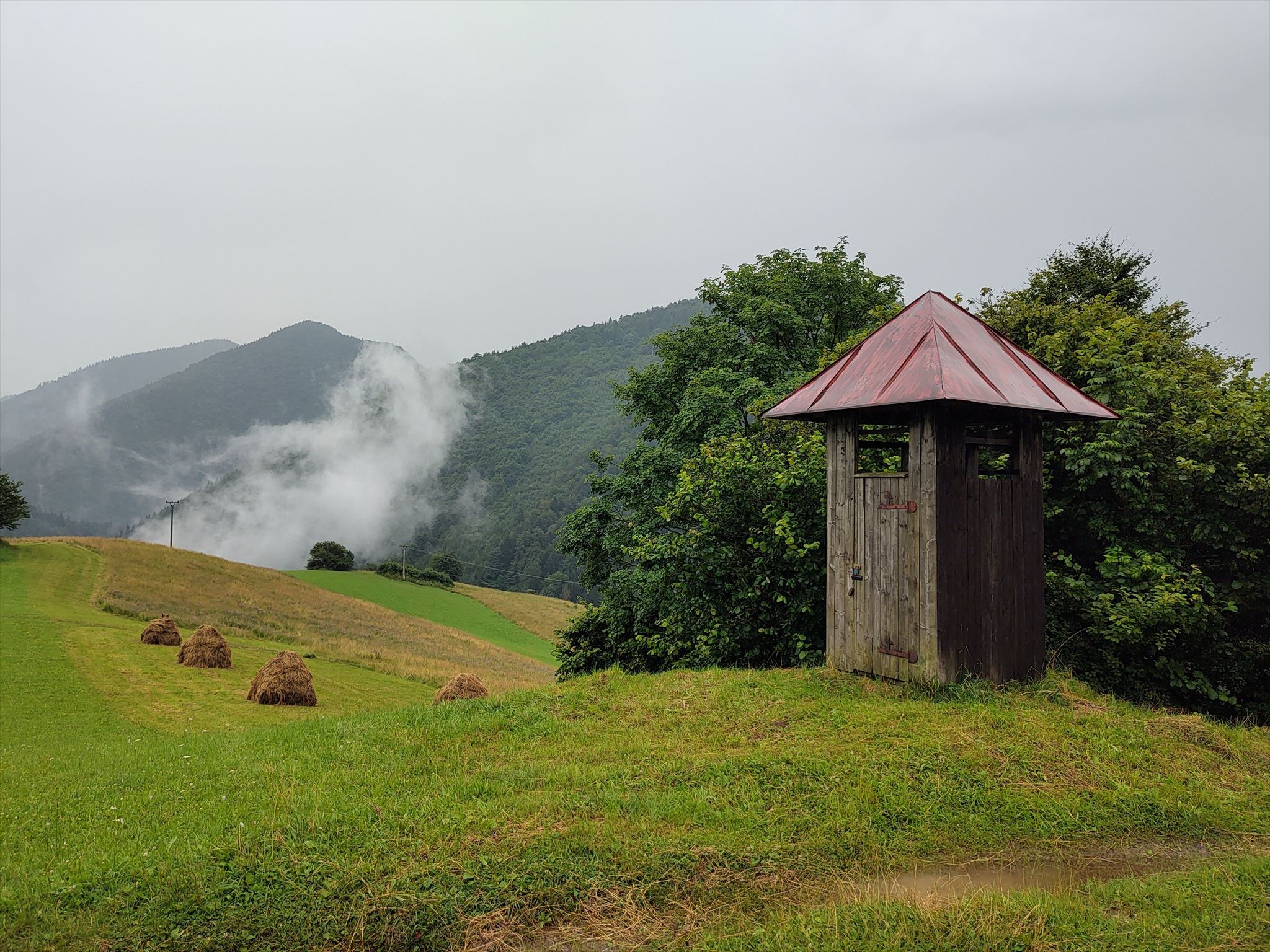 Pred asi dvanástimi rokmi som chcel urobiť kešku ku zvonici v tejto osade... Krabička bola urobená, fotky nafotené a dokonca bola aj umiestnená v teréne... A potom neviem... Vôbec neviem, prečo som ju vlastne nikdy nepustil... Po čase som šiel aspoň zobrať tú krabicu a už tam mrcha nebola... Od vtedy už veľa vody pretieklo a teraz som si nejako spomenul na túto zvonicu. Urobil som novú krabičku a šiel som. Na moje prekvapenie, už sú tu zvonice dve. :) Stará chátra, tú nájdete rovno na ceste a nad ňou, na kopčeku, je nová. Môžete si tu posedieť, pokochať sa kľudom v doline (samozrejme sem tam počuť psa alebo cirkulárku), oddýchnuť a zalogovať kešku. Keška bola premiestnená od novej zvonici ku starej, bude tam mať väčší kľud.