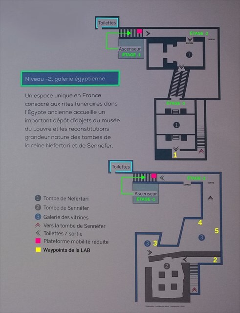 Le "Plan du musée" vous aidera à trouvez les 5 étapes de la LAB. Vous pourrez aussi demander le livret "Demeures d'éternité - Galerie égyptienne" détaillant les tombes de Néfertari et Sennéfer" à votre arrivée à l'accueil du musée.