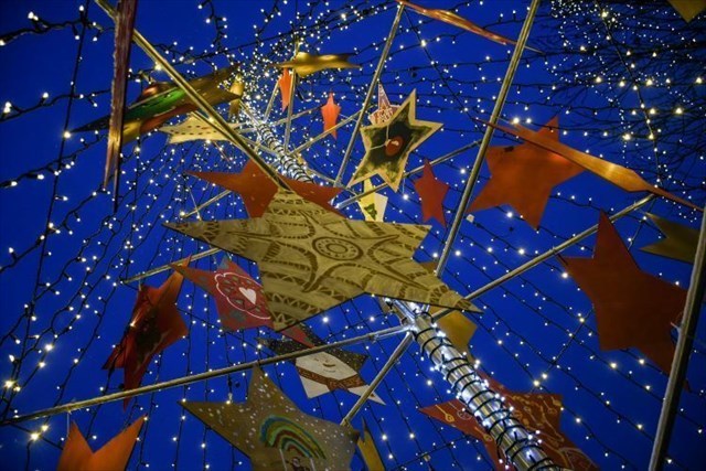 Here stands a "book exchange" library, inviting people to read and share books. During the festive season, the corner transforms with Mojca’s carefully crafted decorations, giving it a unique and magical appearance.