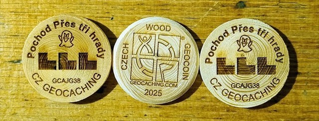 U Lenki – znanej i pomocnej - (cwgland.cz) zamówiliśmy 50 drewniaków, znanych również jako krążki, rozpałka, drewno lub Czech Wood Geocoin. Każdemu, kto pokona trasę marszu o własnych siłach (np. pieszo, na rowerze, hulajnodze) lub, co jest największym śmiałkiem, dotrze do Lanšperka, zostanie osobiście przekazany lub wysłany z Węgier ten spalony kawałek drewna.