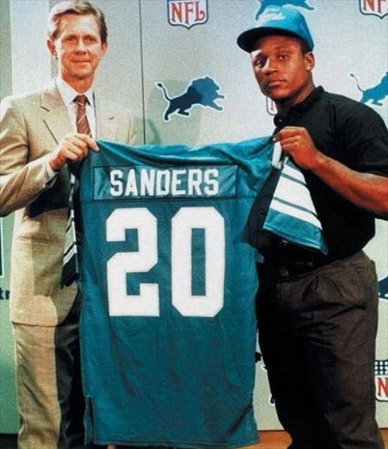 Barry was drafted by the Detroit Lions with the third pick in the 1989 NFL Draft. The Lions were considering drafting a different Sanders - Deion Sanders - but head coach Wayne Fontes convinced them to select Barry instead. Fontes requested that Barry wear #20 in honor of Billy Sims, former Lions running back who was considered one of the league's best in the early 1980s. In his first press conference, Barry said that he wanted to help restore the franchise's reputation in the NFL and to "help restore the roar in the dome."