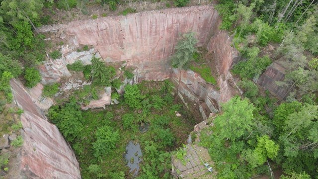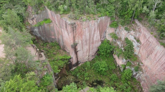 Der Gleisbergbruch, auch umgangssprachlich "Rotes Loch" genannt, ist ein ehemaliger Porphysteinbruch, den man mittels Gesteinssägen und Kränen tief nach unten in den Rochlitzer Berg getrieben hat. Die dazu verwendeten Geräte kann man immer noch betrachten und sich eine Vorstellung davon machen, wie hier abgebaut wurde.