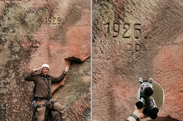 1. Da hier gewissermassen Helmpflicht herrscht, mache bitte ein Bild von dir mit dem zur Verfügung gestellten (etwas albernen) Helm vor der in der Wand eingemeisselten "1926". Schön wäre es natürlich, wenn du dich ebenso etwas zum Kasper machen würdest und den Helm für das Foto auf deinen Kopf drapierst.