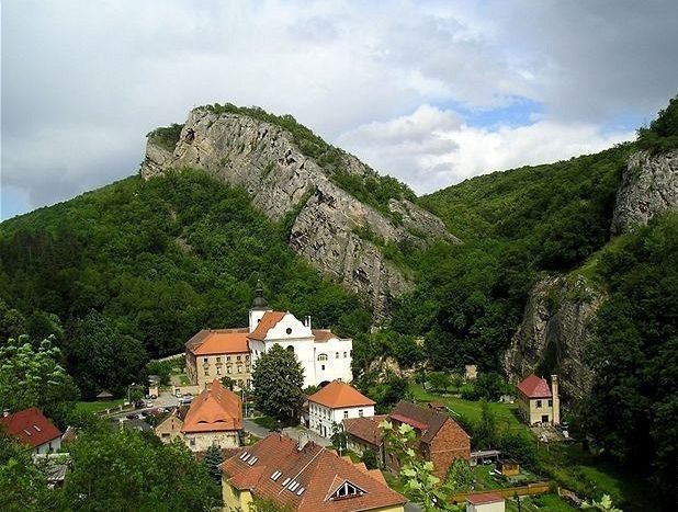 Nežli se vydáte po naučné stezce nahoru na skálu (a můžete pokračovat ještě dál, do skanzenu Solvayovy lomy), máte i dole několik cílů, které stojí za shlédnutí. Přímo pod skalou bíle svítí krásný a velký barokní Kostel Sv. Jana Křtitele, postavený podle projektu Carla Luraga ve druhé polovině 17. století a na začátku století 18. přestavěný Krištofem Dienzenhoferem, protože se na měkkém podloží začal sesedat. Mimochodem - ve Sv. Janu jsou vypsány sbírky na opravy nejen kostela, ale i jiných památek i dnes. Jak sami uvidíte, pokud Sv. Jana navštívíte, je toho nutně zapotřebí...