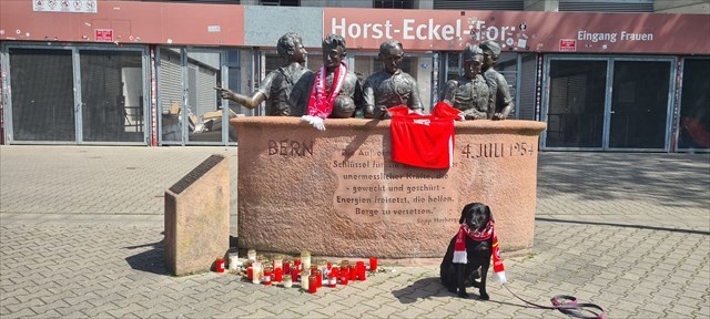 1. Suche das Denkmal –DieLautrerHeldenvonBern– und mache ein Foto mit einem Fan-Gegenstand (z.B. Schal , Trikot o.ä. vom FCK) von dem Denkmal und dir oder deinem GPS o.ä..
