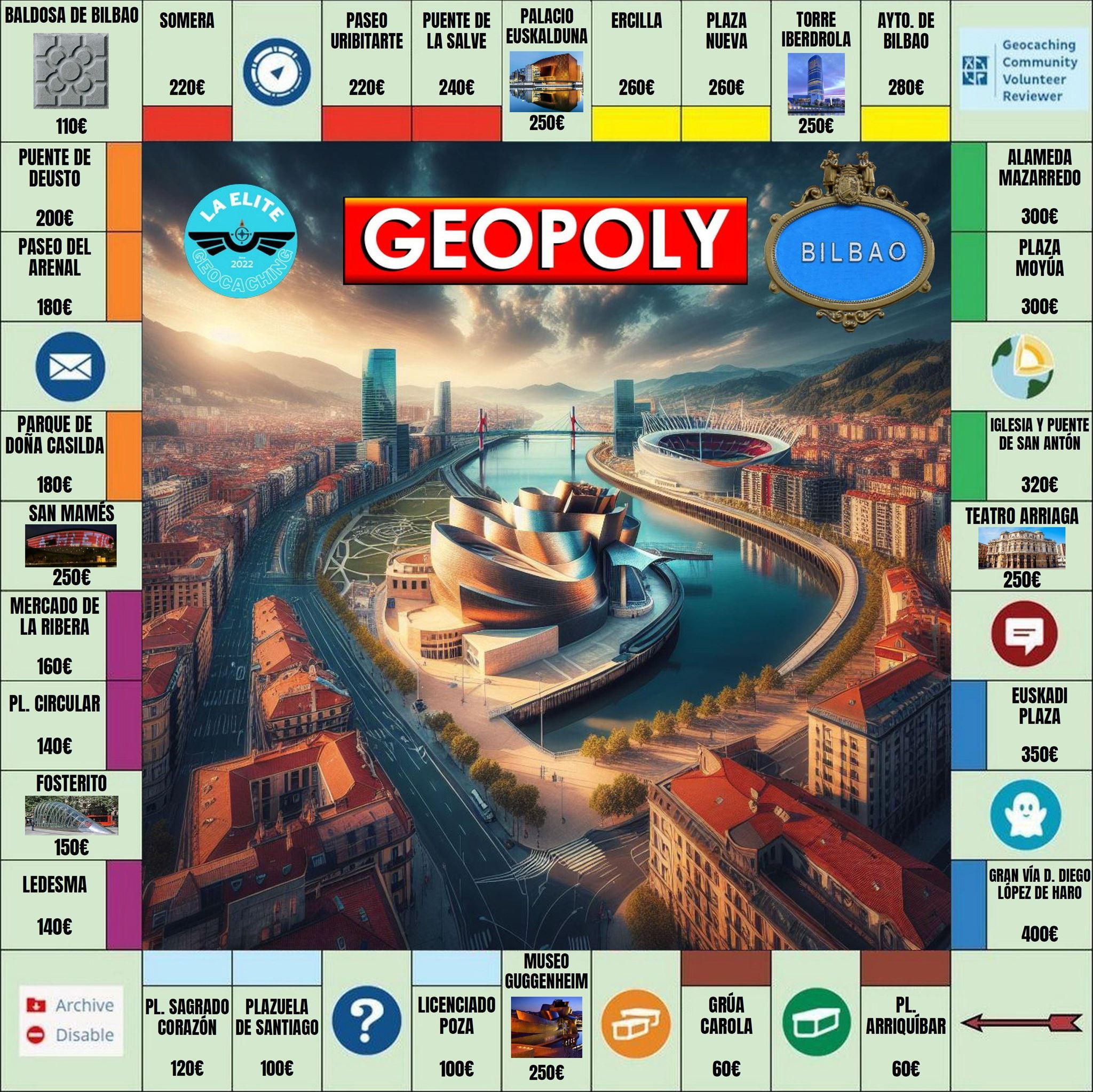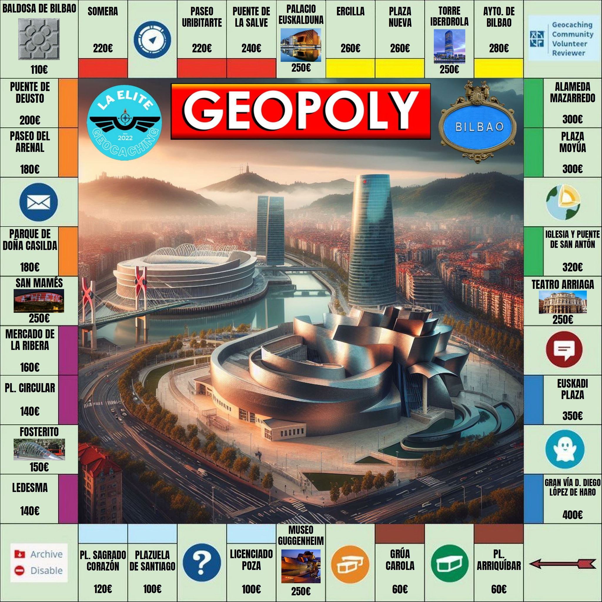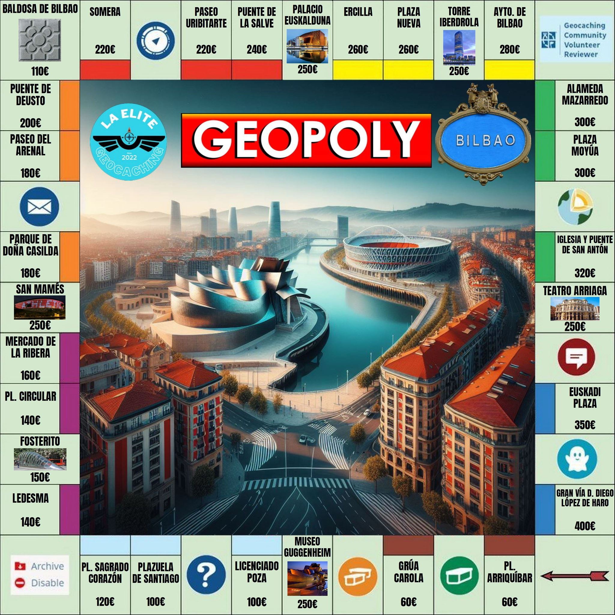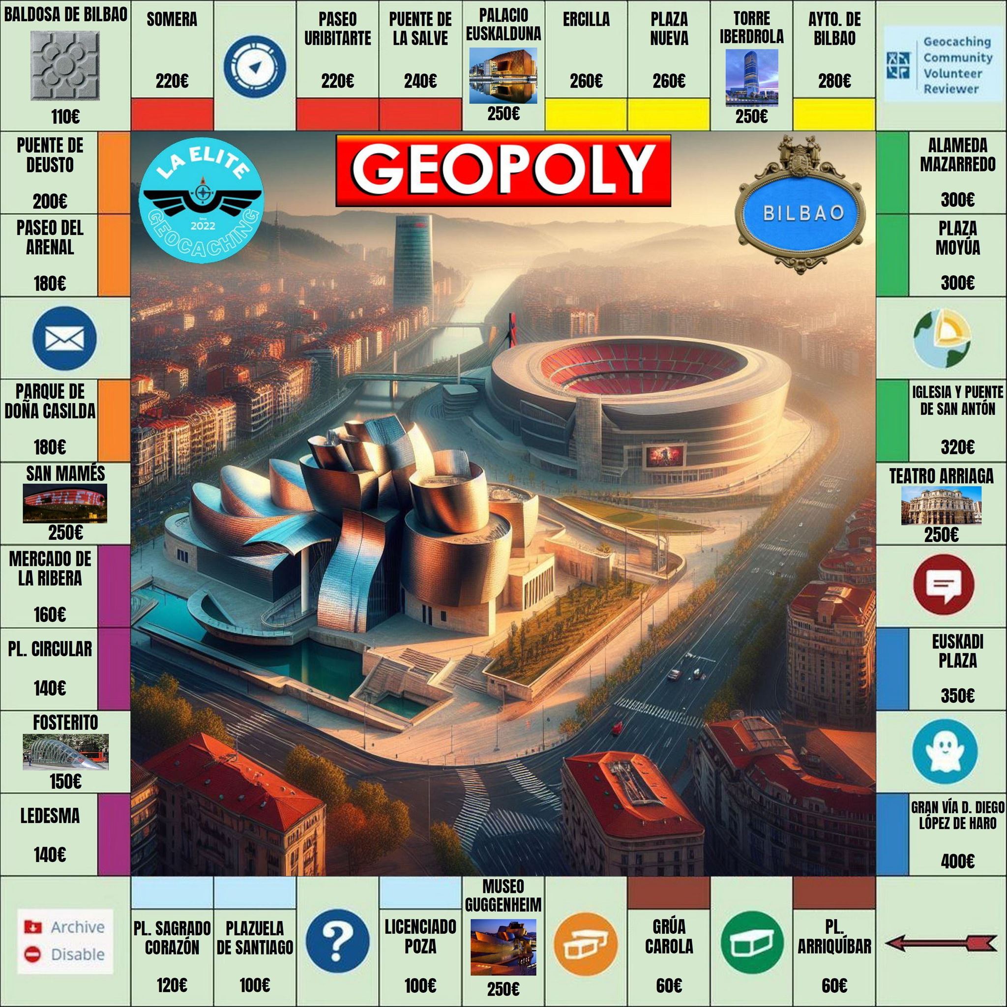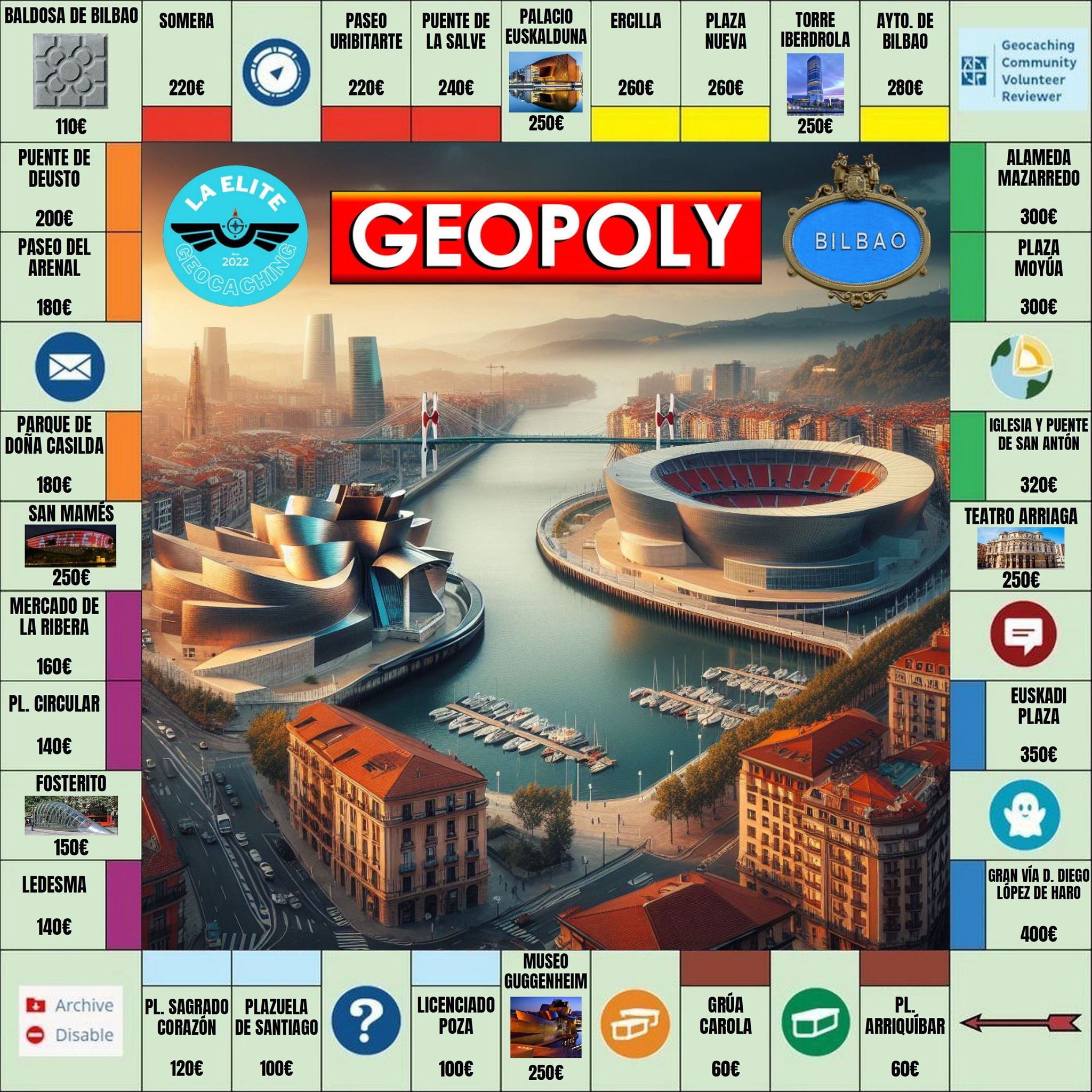 GEOPOLY BILBAO Monopoly mahai-joko ospetsua gogora ekarriko dizun katxe birtuala da, baina zenbait aldaketarekin, Bilboko hiriko hainbat puntu bisitatuz erraza eta erreproduzigarria izan dadin. Bertan, euro birtualak irabaziko dituzu.