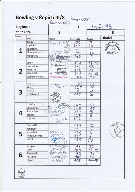 Bowling v Repich III/3, TB vyhral Caravel76 (160 bodu, draha 2)