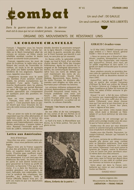 Un exemplaire du journal clandestin combat est retrouvé sur le sol de l’auberge des Ursulines alors que vous buvez un pot de côte avec votre compagnon Marcel.