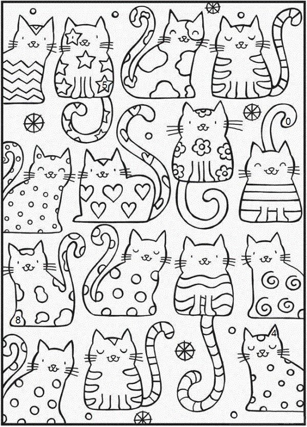 4 Zahlen im Bild zu finden. Es gibt 1 pro Zeile (von Katzen). Notieren Sie im Checker die 4 Ziffern in der Reihenfolge der Entdeckung (von Zeile 1 bis 4).