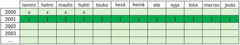 Tämä on Jasmer-tyyppinen haastekätkö, jossa löydettynä tulee olla vähintään 1 kätkö jokaiselta kätkön piilotuskuukaudelta vuonna 2001 alla olevan kuvan mukaisesti. Tämän haasteen suorittamiseen tarvitaan 12 löytöä. Haasteeseen käyvät kaikki muut kätkötyypit paitsi lab-kätköt. Kätköjen julkaisu- tai löytöajalla eikä kätkön sijainnilla ei ole merkitystä.