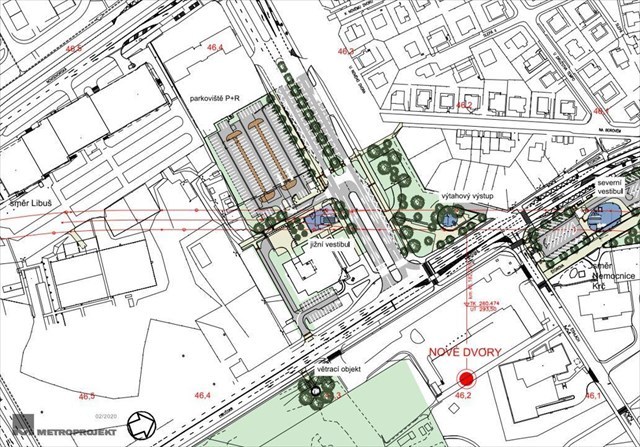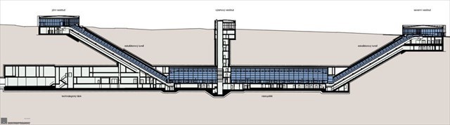 podélný řez stanicí (pro větší detail stahujte kliknutím na obrázek)