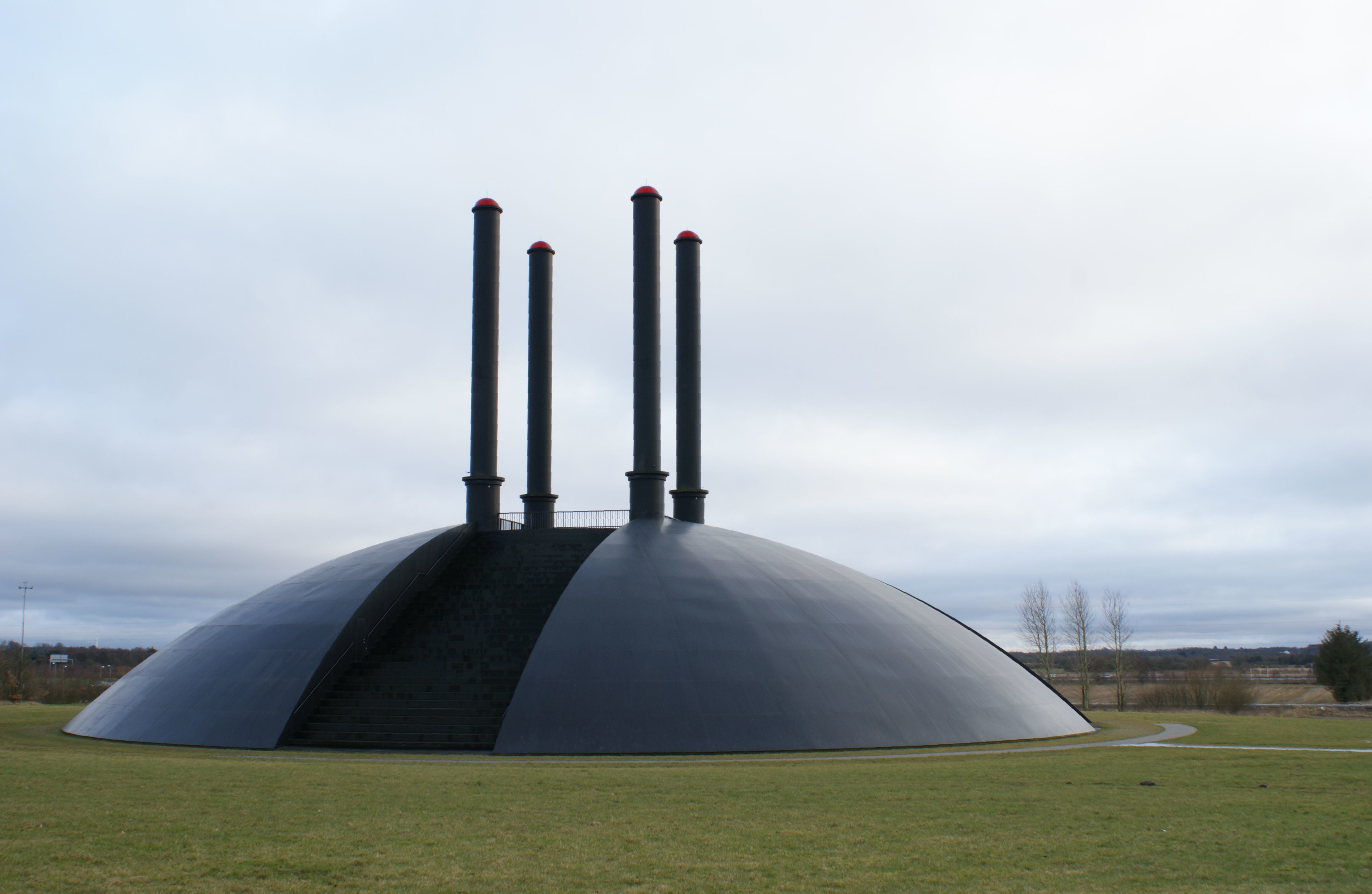 Elia is a sculpture in Denmark created by Ingvar Cronhammar and installed in 2001. The structure is an imposing spherical dome with a diameter of 60m and a central chamber surrounded by four large columns, each reaching 32m high. But this otherwise odd industrial artefact in the middle of a Danish field has an incredible quirk: At random intervals, it shoots fire. These eruptions, as they're known, are very rare - lasting a mere 25 seconds and occurring weeks to months apart, as determined by a computer. Here, your task is quite simple.Clicking the picture of Elia above will take you to a website that will display the final coordinates for ten-minute intervals spaced at random durations (24 hours at most). All you have to do is wait for it to ERUPT.