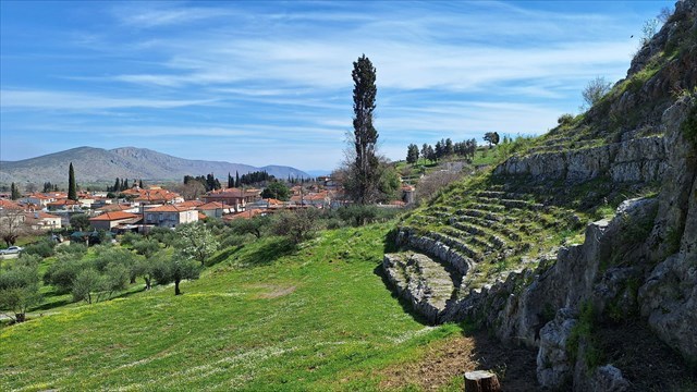 The ancient theater of Heronia was partly embedded into the natural rock of the Petrahos Hill, while the rest of the theater was manmade.