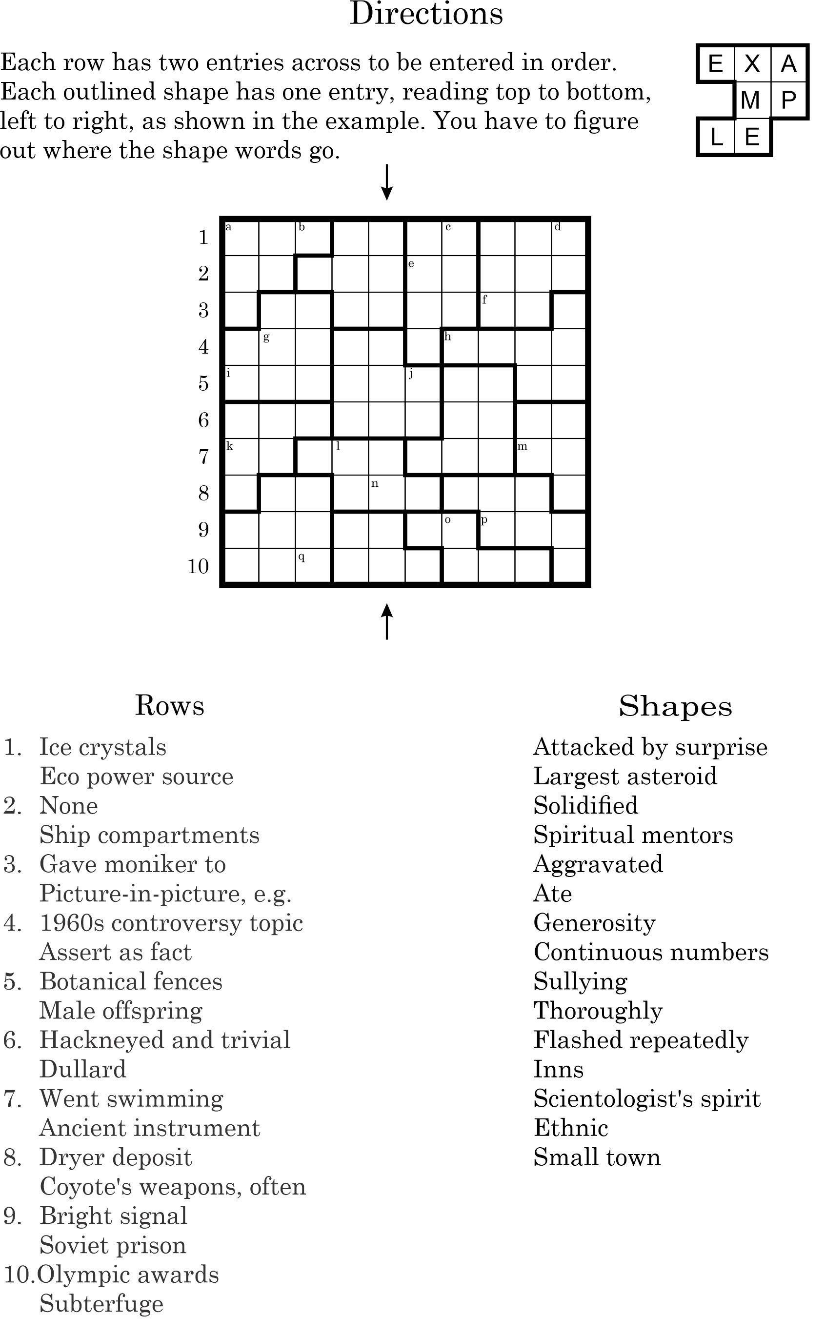 Another Hodgepodge. This one should be a little trickier than the last. Solve the puzzle and enter the letters in the marked column, from top to bottom into Certitude.