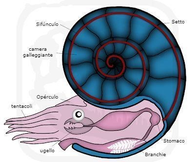 Le ammoniti vivevano in conchiglie suddivise in camere. Il corpo veniva alloggiato nella camera più esterna, mentre la camera più interna era la più antica. Quando l'animale cresceva e aveva bisogno di più spazio, creava una nuova camera a partire da quella più esterna. Man mano che l’animale cresceva, questo processo si ripeteva svariate volte.