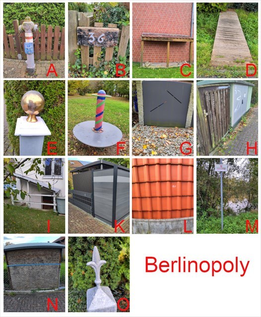 Findet die abgebildeten Objekte und ordnet sie den 14 Berliner Bezirken zu, die hier Pate standen. Die Final-Koordinaten erhaltet Ihr mit der Formel: