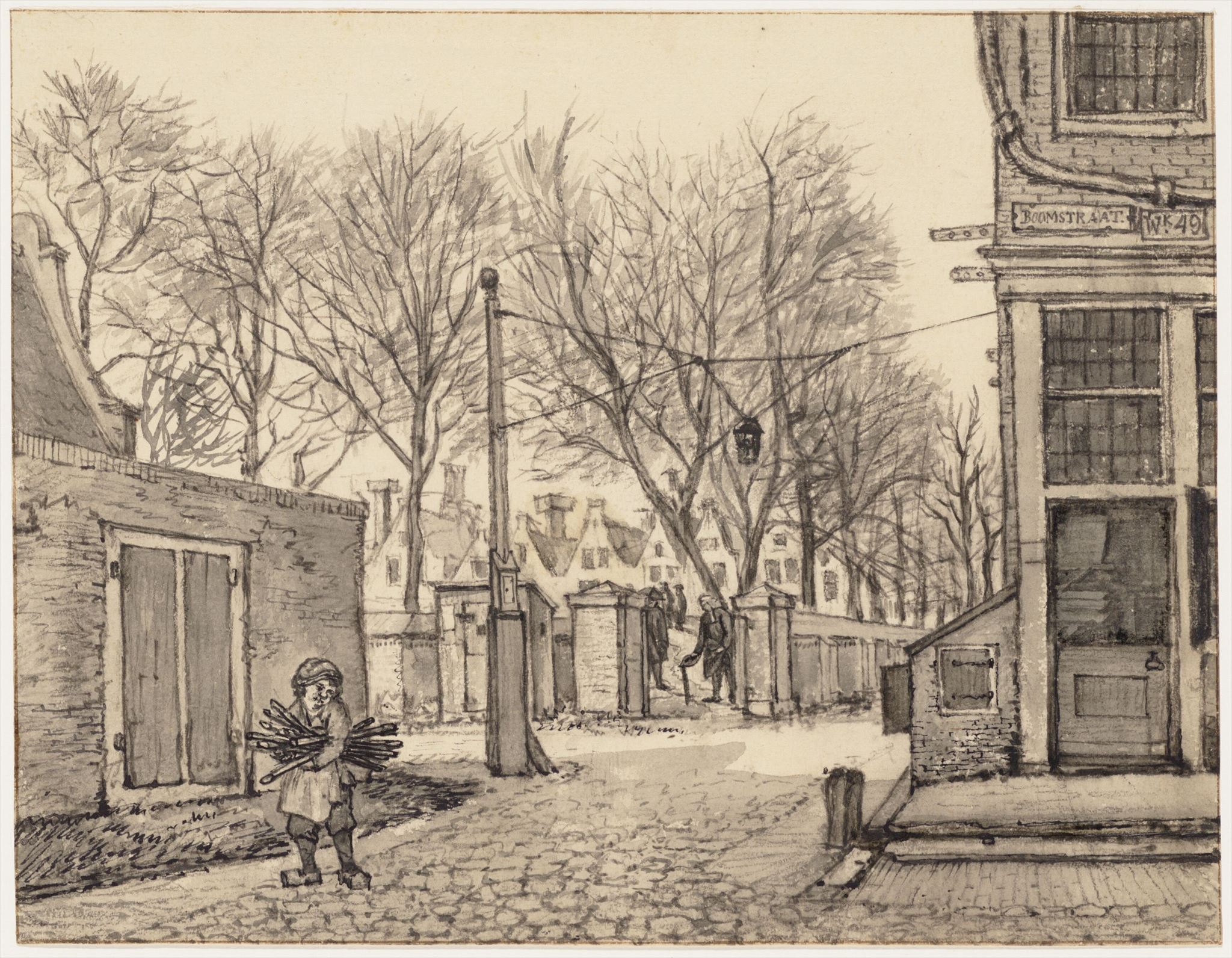 The Karthuizers cemetery in the year 1728, with drying laundry in the middle. (Source: Amsterdam City Archives, creator: Andries Schoemaker)