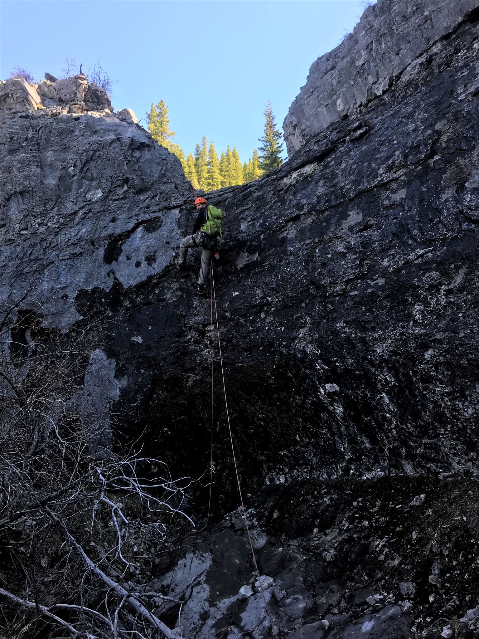 The event organizers will provide and place the ropes for each of the rappels. In order to be safe, a buddy system will be in place for the rappels, with someone at the top checking equipment set up before each rappel and with someone at the base for "fireman's brake". Although no experience rappelling is necessarily required, it is recommended. The event hosts will do everything in their power to ensure that everyone has a safe and fun experience. For more experienced, independent adventurers, feel free to bring your own ropes and reach the event site at your own leisure.