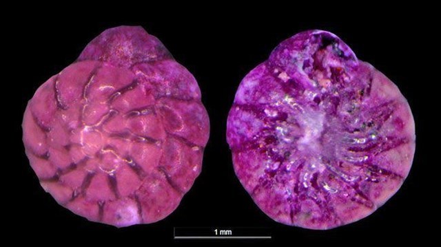 | Now that we learned more about sand and how it is formed, let's learn about why the sand here has a pink color! Pink sand is formed by the presence of microscopic organisms called Foraminifera, which is shown above. These tiny organisms vary in size from <1mm up to several centimeters (depending on species), an have reddish shells. When they die, their shells mix with the sand, giving it a pink hue. Additionally, the erosion of red coral also contributes to the pink coloration of the sand in some areas. Over time, the shells and coral fragments wash up on the shore, mixing with the sand, and become part of the beach. This process is responsible for creating the distinctive pink sand found on Shell Beach.