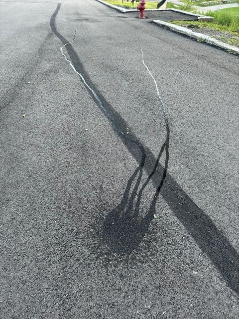 I then went over to regular pavement that is close to Waypoint B. I emptied the second bottle of water on the ground. Notice in this picture, how the water ran across the parking lot and not get absorbed into the ground as easily.