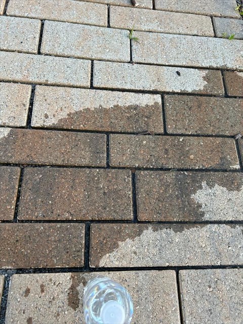 I took one of the bottles of water and emptied it on the porous parking lot. Notice in the picture how the water did not run across the parking lot but instead was absorbed into the ground.